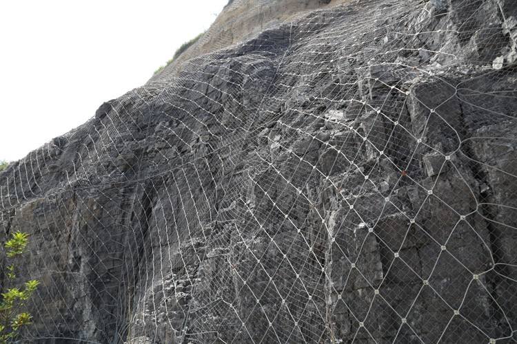 主动防护系统是以用钢丝绳网为主的各类柔性防护网覆盖或包裹在需要防护的斜坡以及岩石上,以限制坡面岩石土体的风化剥落或者破坏以及危岩崩塌(加固作用),或者将落石控制于一定范围内运动(维护作用)。
